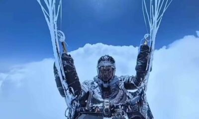 Um piloto de parapente foi levado por uma nuvem e chegou a uma altitude que ultrapassa os 8 mil metros, durante um voo no último sábado (24), na...
