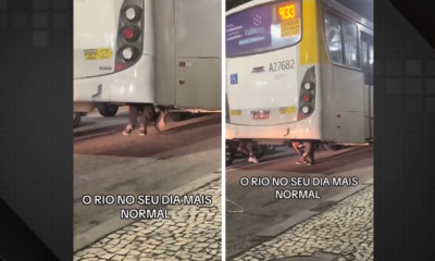 Uma cena inusitada chamou a atenção nas redes sociais. Um homem foi flagrado pegando carona na estrutura traseira de um ônibus em movimento. O Rio Ônibus...