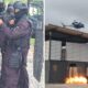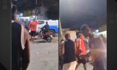 Vídeo mostra o momento em que moradores desafiam um blindado da Polícia Militar no Complexo da Pedreira, Zona Norte do Rio de Janeiro, e saqueiam a carga...