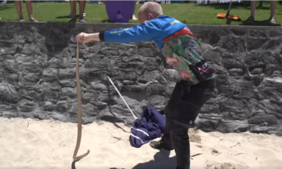 Um cobra venenosa, com cerca de dois metros de comprimento, foi capturada na praia de Mooloolaba, na Austrália. O animal foi avistado por banhistas nadando no...