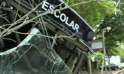 Um ônibus escolar despencou de um barranco na altura da Rocinha, em São Conrado, Zona Sul do Rio de Janeiro, no fim da manhã desta quarta-feira...