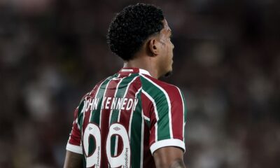O atacante John Kennedy comemorou o gol marcado na goleada do Fluminense por 6 a 0 sobre o São Paulo, no Maracanã, nesta quinta-feira (27). O...