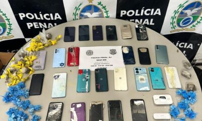 A Secretaria de Estado de Administração Penitenciária do Rio de Janeiro (Seap) apreendeu nove celulares, um roteador e cerca de 1 kg de droga durante uma...