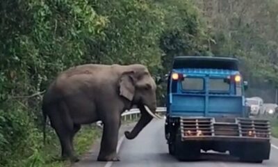 Um elefante selvagem protagonizou uma cena curiosa ao parar um caminhão em plena estrada na província de Prachuap Khiri Khan, na Tailândia, em busca de comida....
