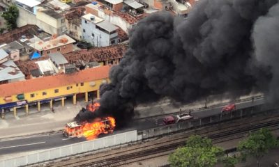 Um incêndio em um ônibus bloqueia a Avenida Pastor Martin Luther King, próximo ao Centro de Distribuição CEASA – RJ, na manhã desta terça-feira (4). Segundo...