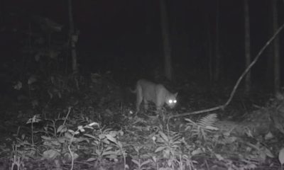 Um vídeo publicado nas redes sociais mostra o momento em que a ave aparece nadando em direção à areia