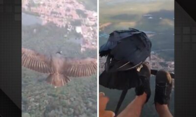 Um vídeo inusitado viralizou nas redes sociais ao mostrar um urubu pousando tranquilamente nos pés de um parapentista durante um voo na Serra de Aratanha, no...