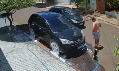 Um momento inusitado, registrado por uma câmera de monitoramento no dia 16 de fevereiro, viralizou nas redes sociais. Nas imagens, um homem aparece concentrado lavando o...