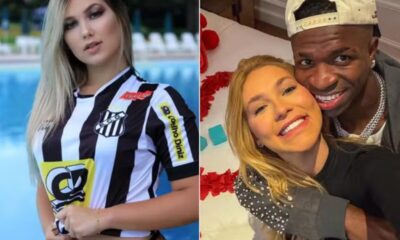 Virginia Fonseca chamou atenção neste sábado (2) ao aparecer no estádio Santiago Bernabéu, em Madri, para torcer pelo namorado, Vini Jr., durante a partida entre Real...