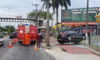 Três pessoas ficaram feridas após um carro invadir um ponto de ônibus na Avenida Ayrton Senna, altura do Shopping Aerotown, sentido Orla, na Zona Oeste do...