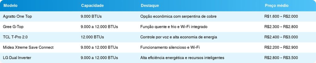 Ranking dos melhores ares-condicionados em 2026