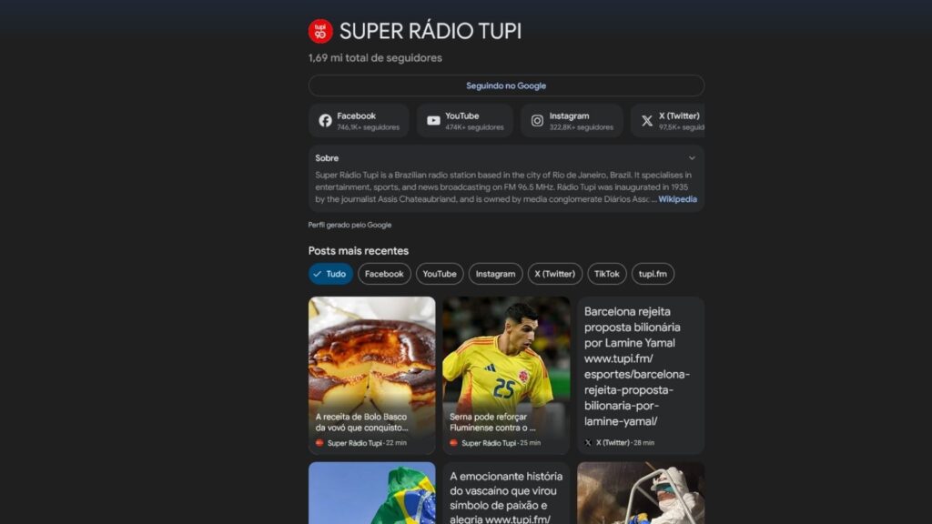 A Super Rádio Tupi deu um passo importante em sua estratégia digital ao lançar seu perfil oficial no Google Discover. A novidade permite que os usuários acompanhem o conteúdo jornalístico da emissora de forma direta e personalizada, refletindo uma tendência de mercado na qual grandes veículos de comunicação buscam se adaptar aos novos hábitos de consumo de informação.