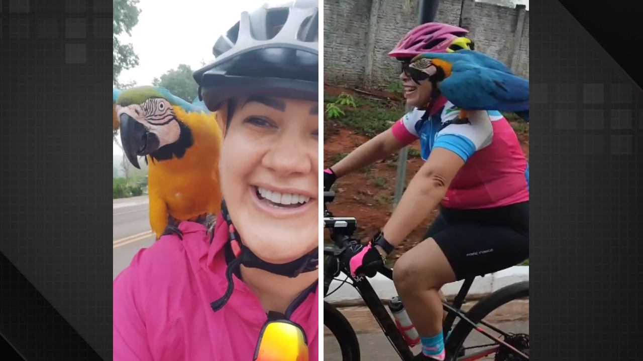 Nas imagens compartilhadas pelas próprias ciclistas, é possível ver a arara no ombro de cada uma delas em cada parte do trajeto. Ao final do vídeo a ave acena a cabeça com sinal de positivo ao ser perguntada se ela “gostou do passeio”.