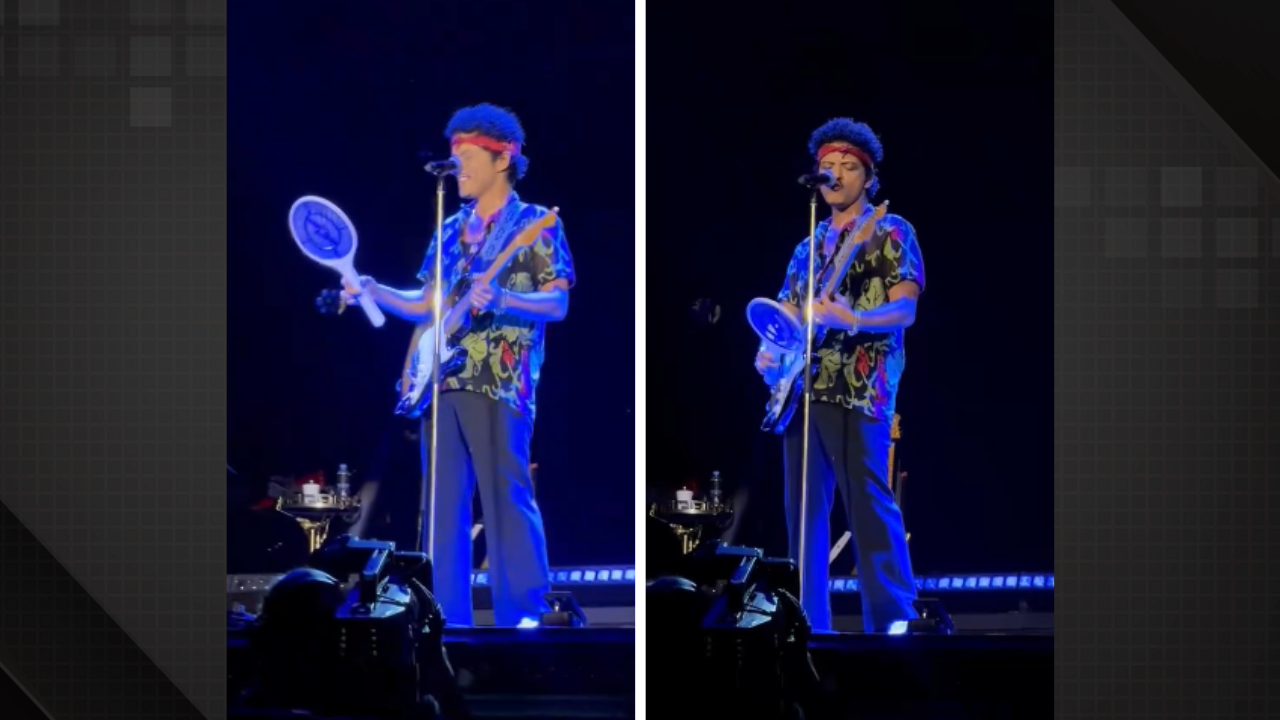 Bruno Mars ‘engole’ mosquito e aparece com raquete elétrica em show no dia seguinte; assista