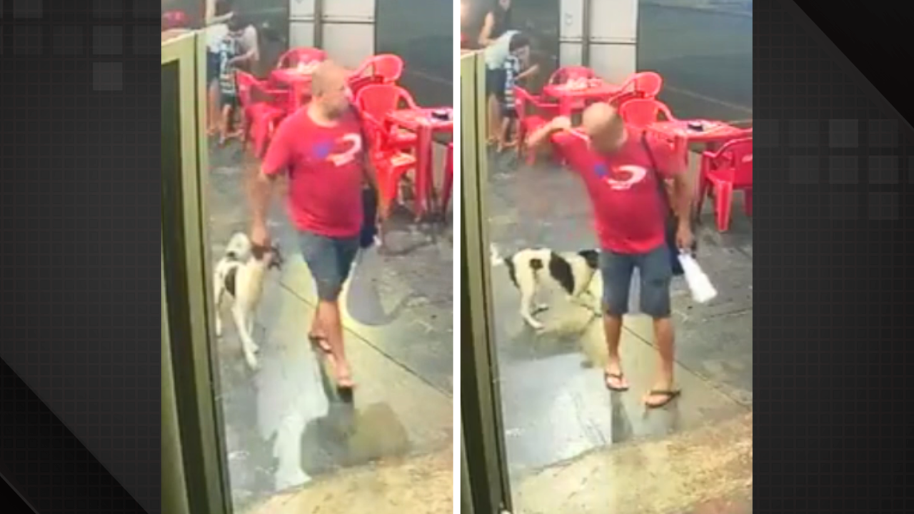 O proprietário do do estabelecimento disse que a cena é comum e que cães costumam ficar pela região a espreita de clientes distraídos.