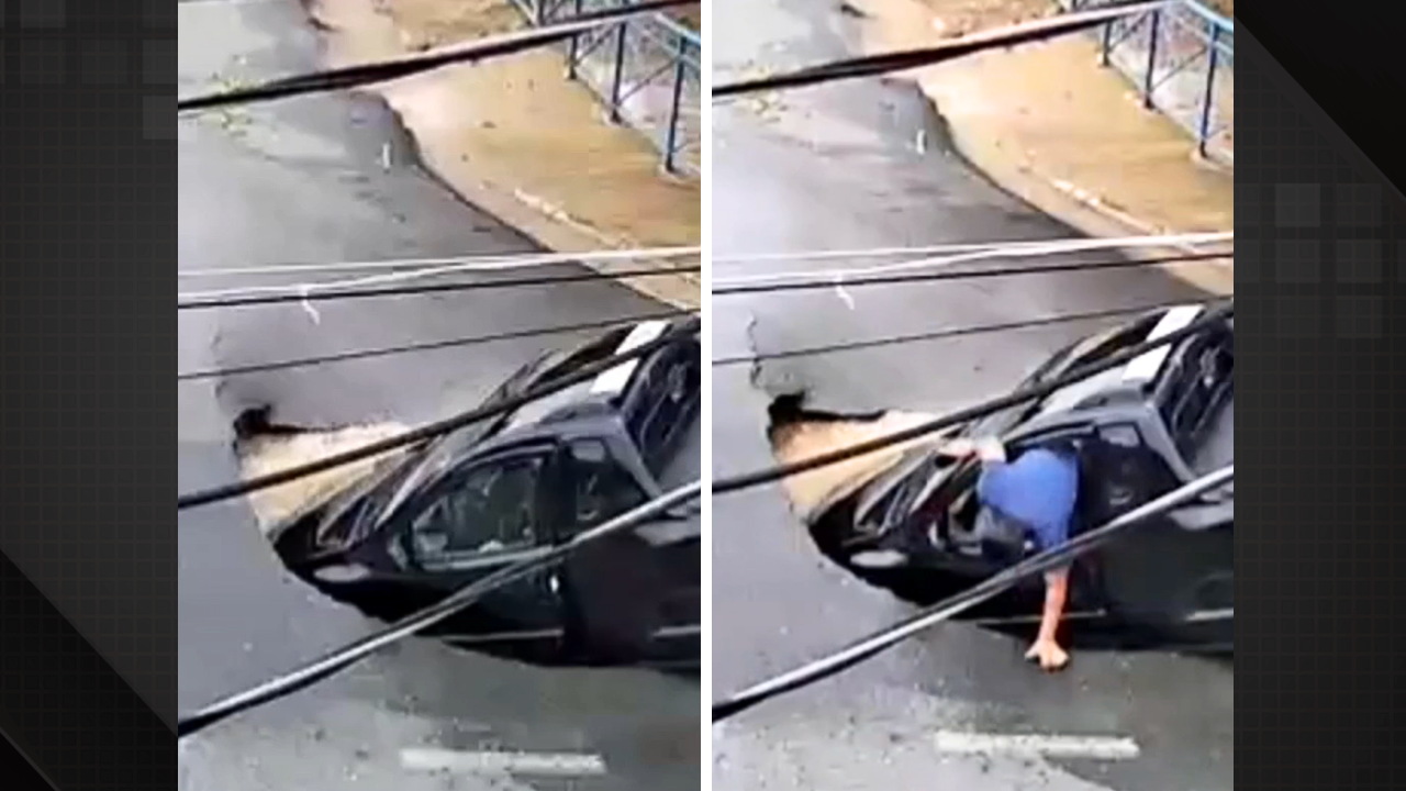 Motorista escapa pela janela após carro ser ‘engolido’ por cratera em Sorocaba; assista