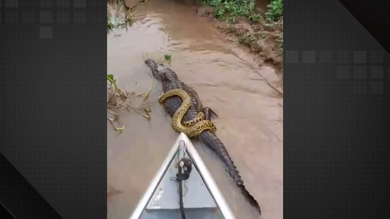 Sucuri é flagrada ‘pegando carona’ nas costas de jacaré no Pantanal; assista