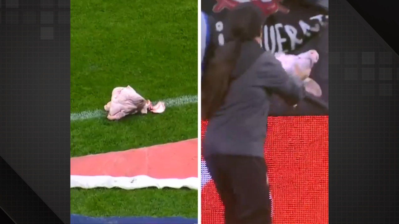 Torcida do Corinthians arremessa cabeça de porco no gramado em jogo contra o Palmeiras; assista