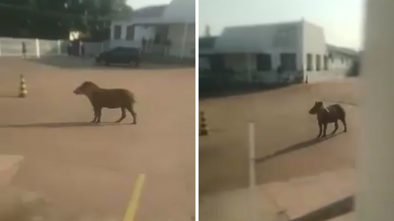 Na manhã desta quarta-feira (04), uma anta foi flagrada passeando dentro de uma escola em Campo Grande, no Mato Grosso do Sul. A cena inusitada foi registrada por um homem que passou pela escola técnica que fica na Rua Joaquim Murtinho.