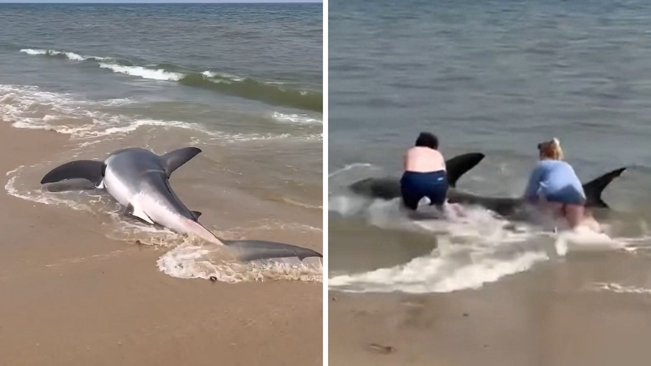 Vídeo: banhistas resgatam tubarão-branco encalhado na areia