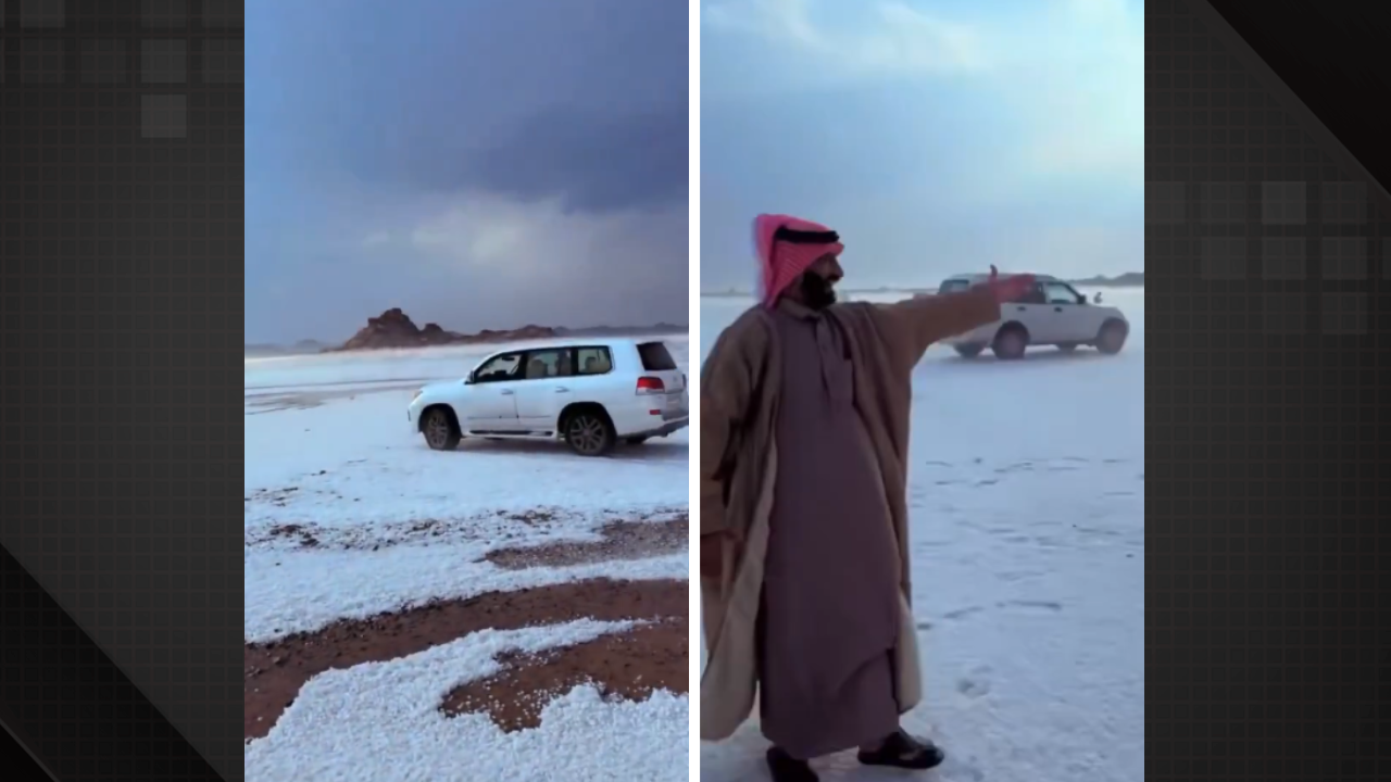 Vídeo: com aparência de neve, deserto na Arábia Saudita fica coberto de granizo