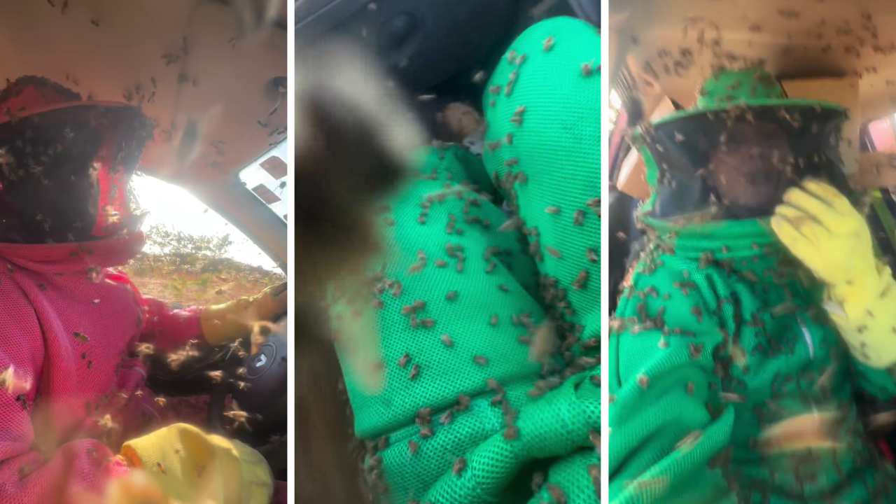 Dois apicultores de Goiás, compartilharam um vídeo de um enxame de abelhas circulando dentro do carro enquanto transportavam algumas colmeias. A cena viralizou nas redes sociais e impressionou pela calma de ambos no veículo.