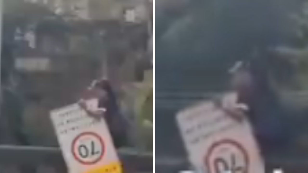 Vídeo: homem rouba placa de limite de velocidade