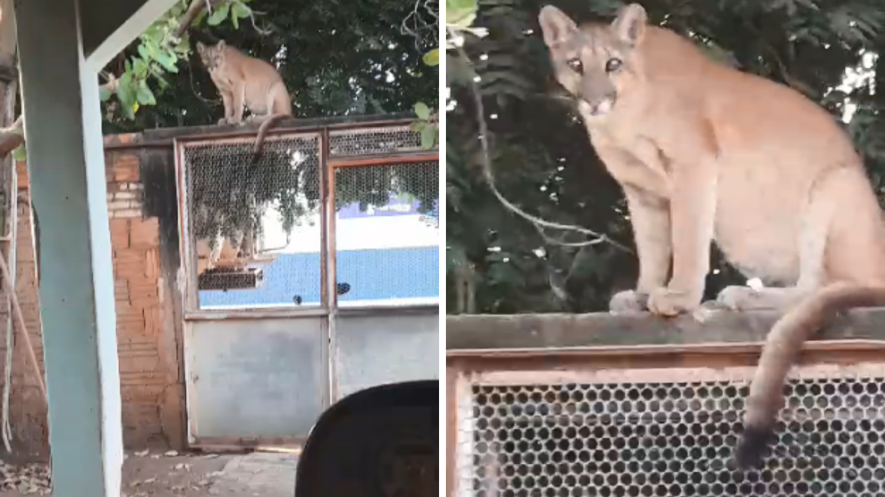 Vídeo: onça-parda invade casa e sobe em portão na cidade de Cáceres, no Mato Grosso do Sul