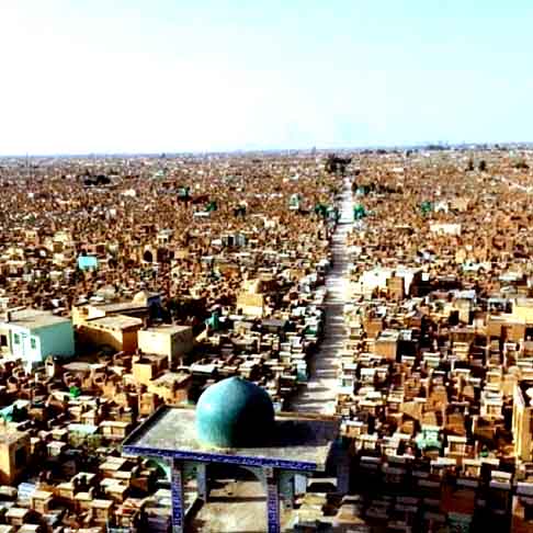 Ele fica localizado nas areias do deserto, em um lugar conhecido como o "Vale da Paz". Lá, mais de 6 milhões de pessoas repousam, homenageadas por flores, fotografias e bandeiras religiosas.
