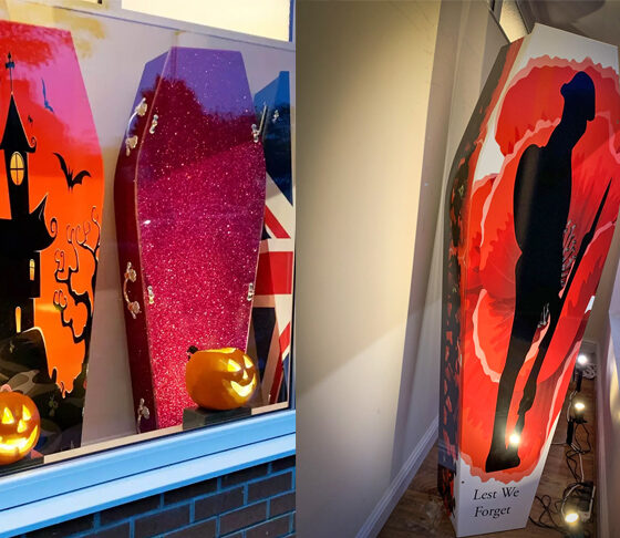Crédito: Personal Funerária - Facebook Go as you please FuneralsAqui, destacam-se os caixões do time de futebol Blyth Spartans e da saga de cinema Star Wars (Guerra nas Estrelas). Na medida para os torcedores e fãs.