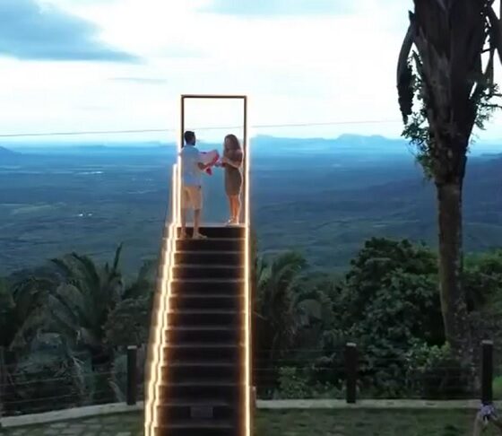 Crédito: reproduçãoVídeos mostrando pedidos de casamento na escada já tiveram milhões de visualizações nas redes sociais.