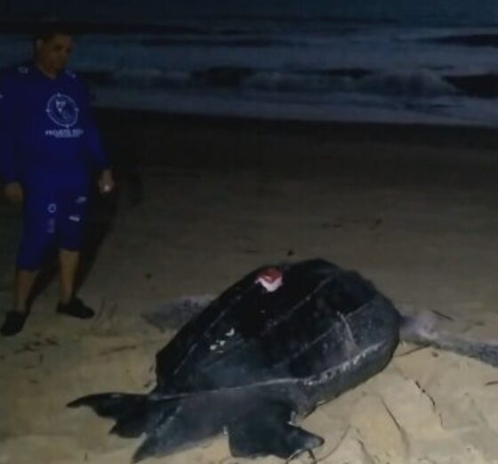 Crédito: Reprodução Tv GloboA tartaruga-de-couro também vem ao Brasil para a desova. Chegam muitas ao litoral do Espírito Santo, de outubro a abril.