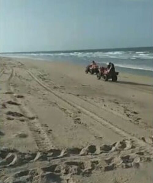 Crédito: Reprodução Tv GloboMas há um problema. É que, além de caminhar e se banhar, turistas usam carros e motos para se divertir na faixa de areia das praias. E ocorrem casos de atropelamento das tartaruguinhas.