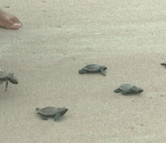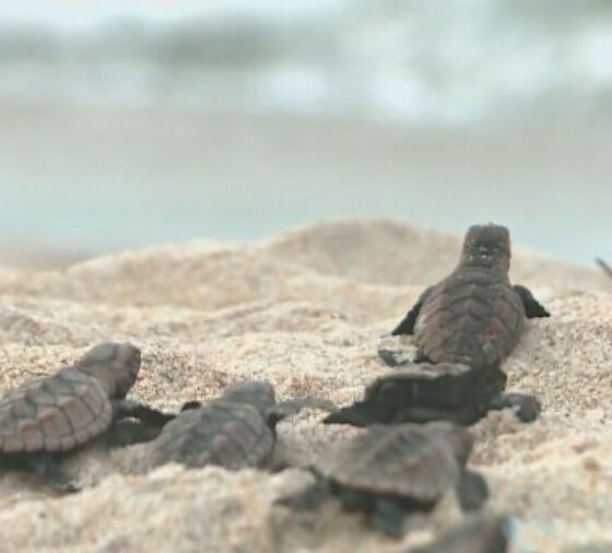 Crédito: Reprodução Tv GloboSão espécies que migram de longe para desovar em municípios costeiros do Piauí. Elas chegam de locais frios e distantes em busca de praias tropicais. E formam ninhos na areia.