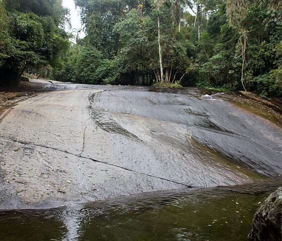 Crédito: Reprodução/YouTube Trip PartiuO acesso por estrada sinuosa revela vistas espetaculares, e a região também oferece trilhas, como a que leva à Cachoeira do Tobogã, onde é possível deslizar por uma rocha natural.