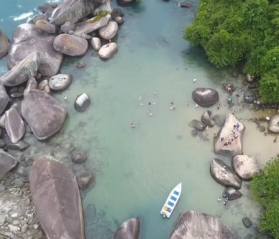 Crédito: Reprodução/YouTubePraias como a Praia do Cachadaço (foto), com suas piscinas naturais, e a Praia do Meio, cercada por mata atlântica, são verdadeiros tesouros.